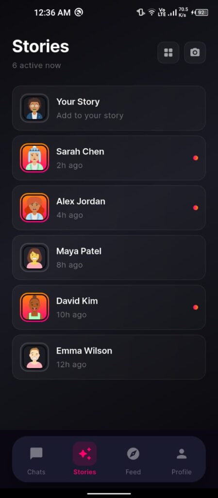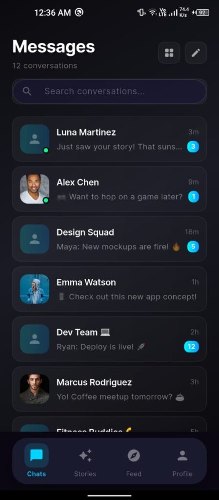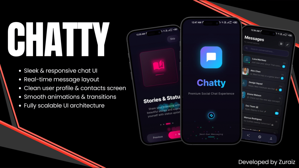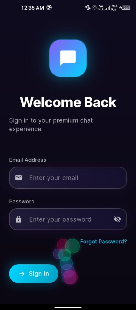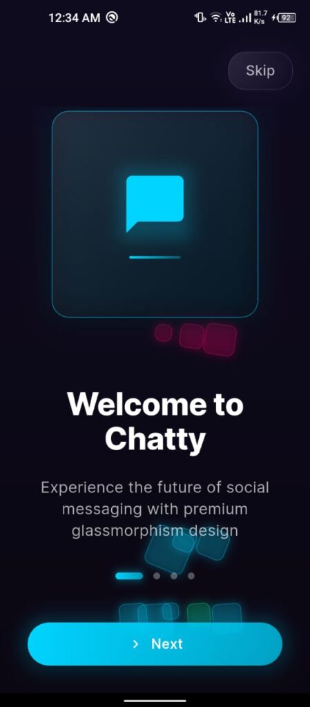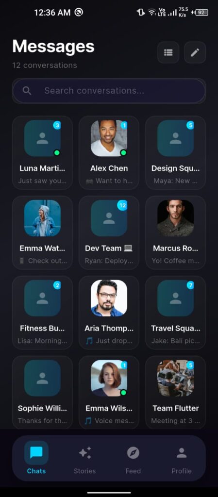 A beautifully crafted chat application frontend built with Flutter, focusing on clean UI, smooth animations, and scalable structure. Designed to resemble modern messaging apps like WhatsApp, Messenger, and Telegram—this UI provides the foundation for a full real-time chat experience.