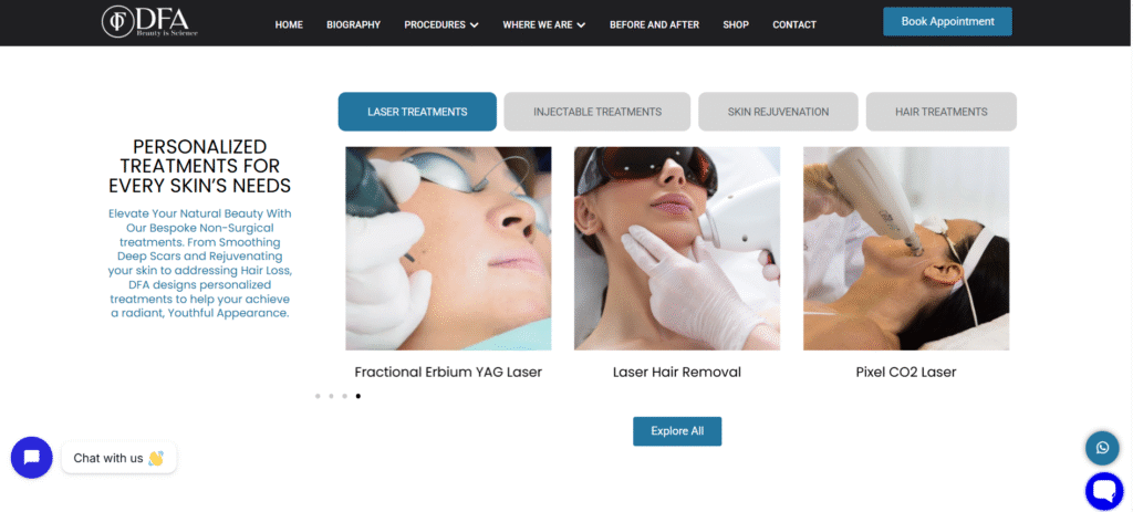 Content Enhancement: Rebuilt key sections to clearly communicate Dr. Fazeela’s philosophy and unique approach to aesthetic dermatology.