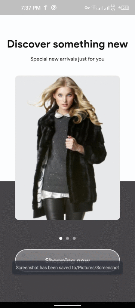- Home Screen: Product categories and personalized recommendations