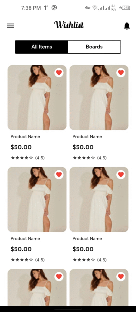 - Wishlist Screen: Product saving functionality