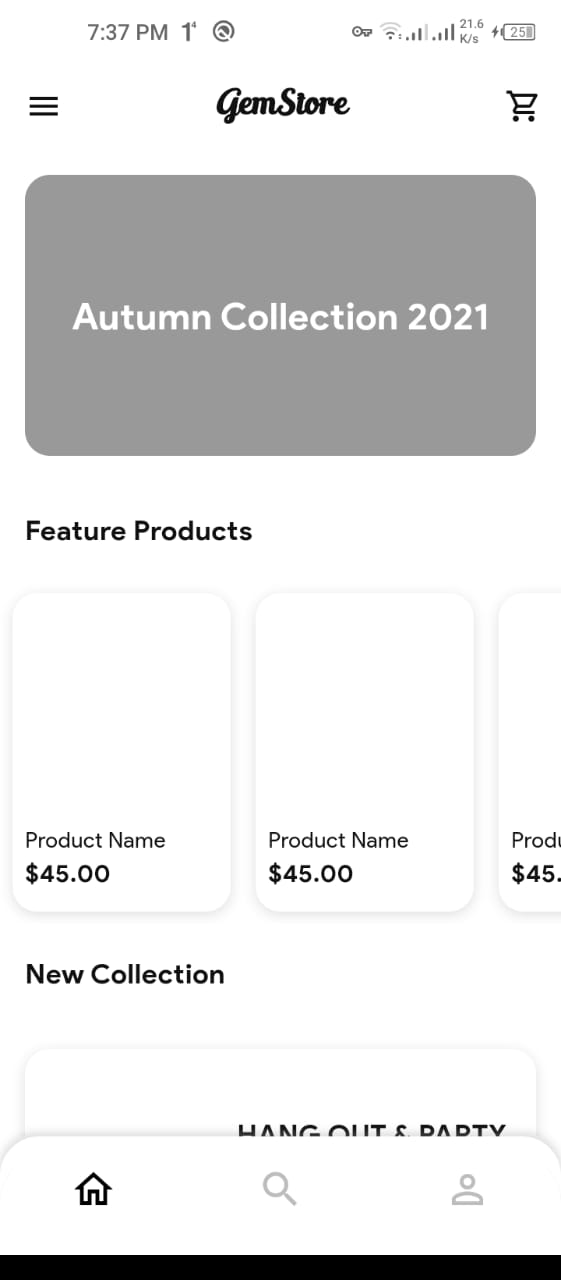 - Home Screen: Product categories and personalized recommendations