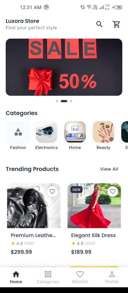 Luxora Store is a modern mobile e-commerce application built entirely in Flutter.
