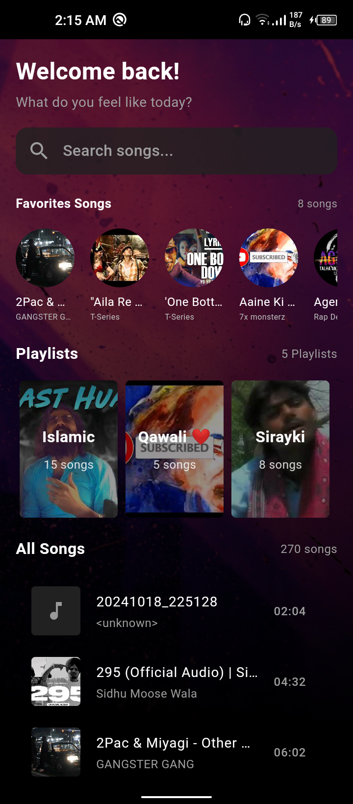 A feature-packed, elegant music player app developed with Flutter! Built with a focus on modern design, efficiency, and user-friendly features, this app delivers a seamless experience for all music lovers.