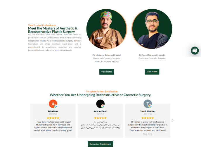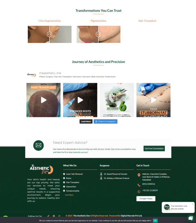 The final website delivered a luxurious, trustworthy, and conversion-focused user experience. It successfully positioned the clinic as a leading aesthetic & reconstructive surgery provider in Islamabad and improved digital branding and patient engagement